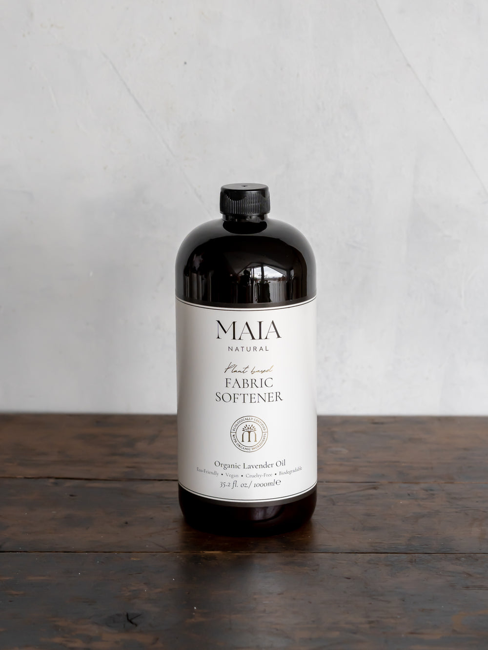 Maia Natural Fabric Softener is crafted with 100% natural, plant-based ingredients and infused with certified organic lavender essential oil to leave your laundry smoother, softer, and lightly scented — all without synthetic chemicals or harmful additives.